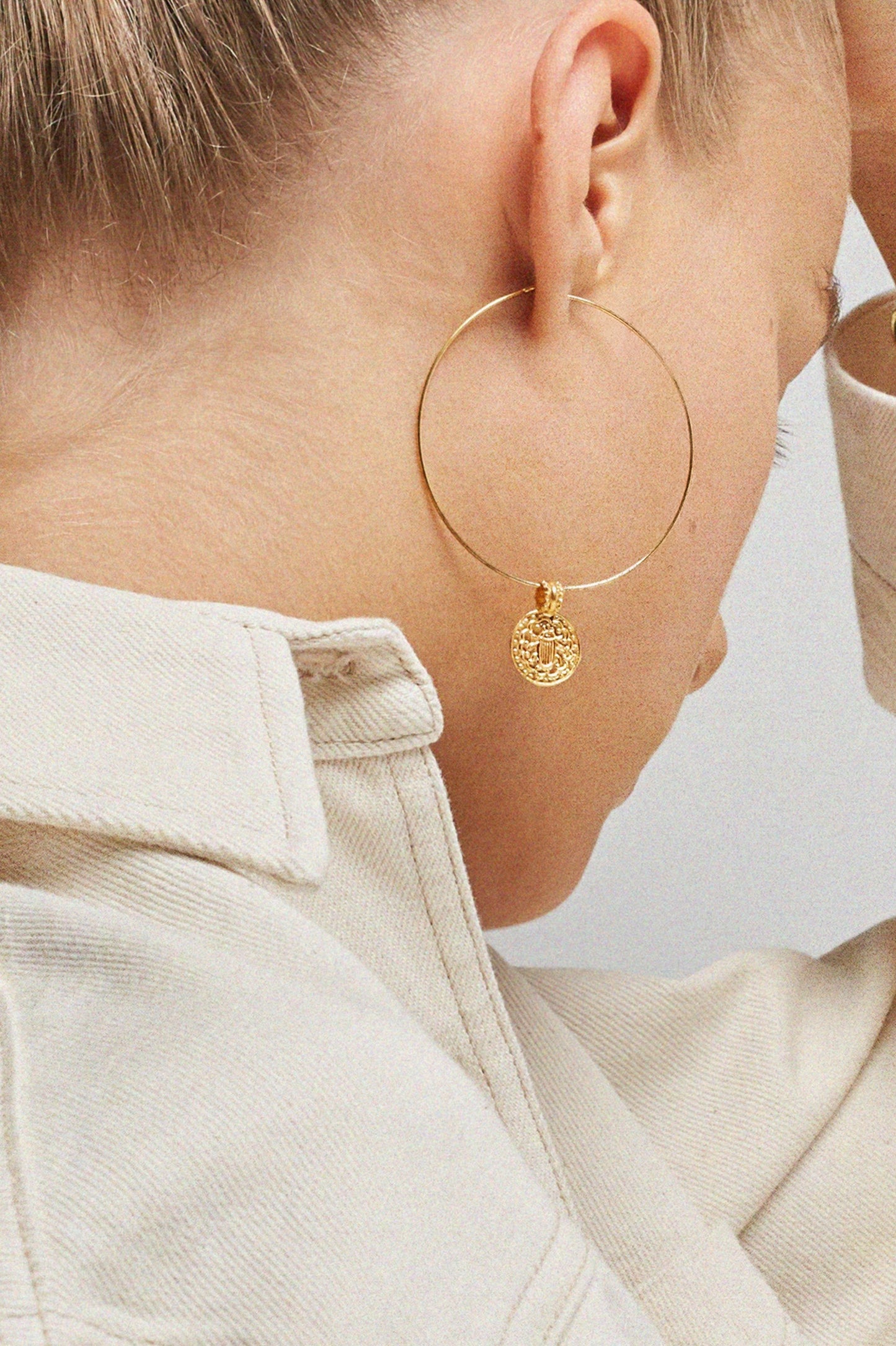 DOMITILLE1 est un pendentif rond en vermeil décoré d'un scarabée. Les motifs à l'intérieur de la médaille sont gravés par martelage.