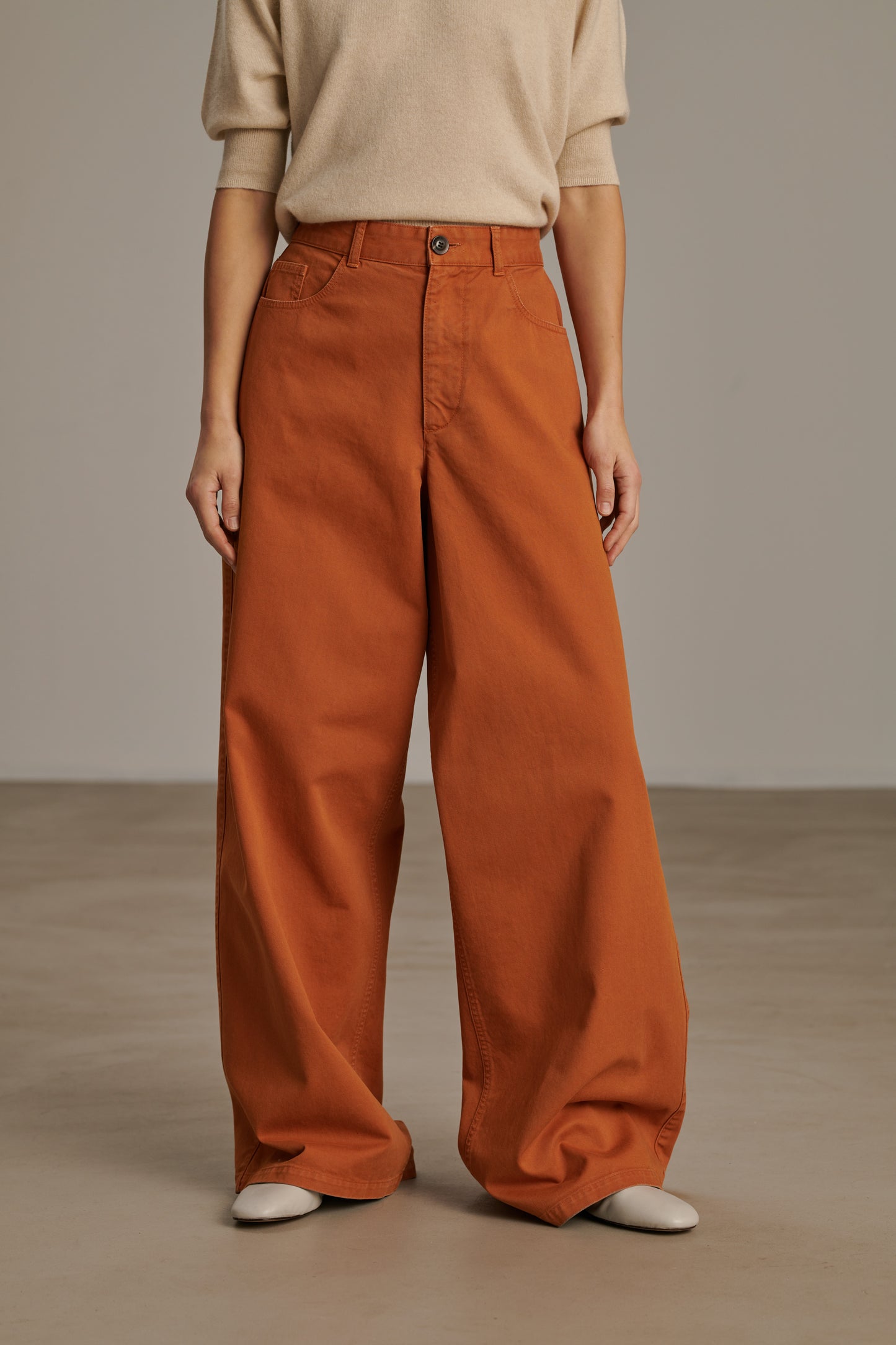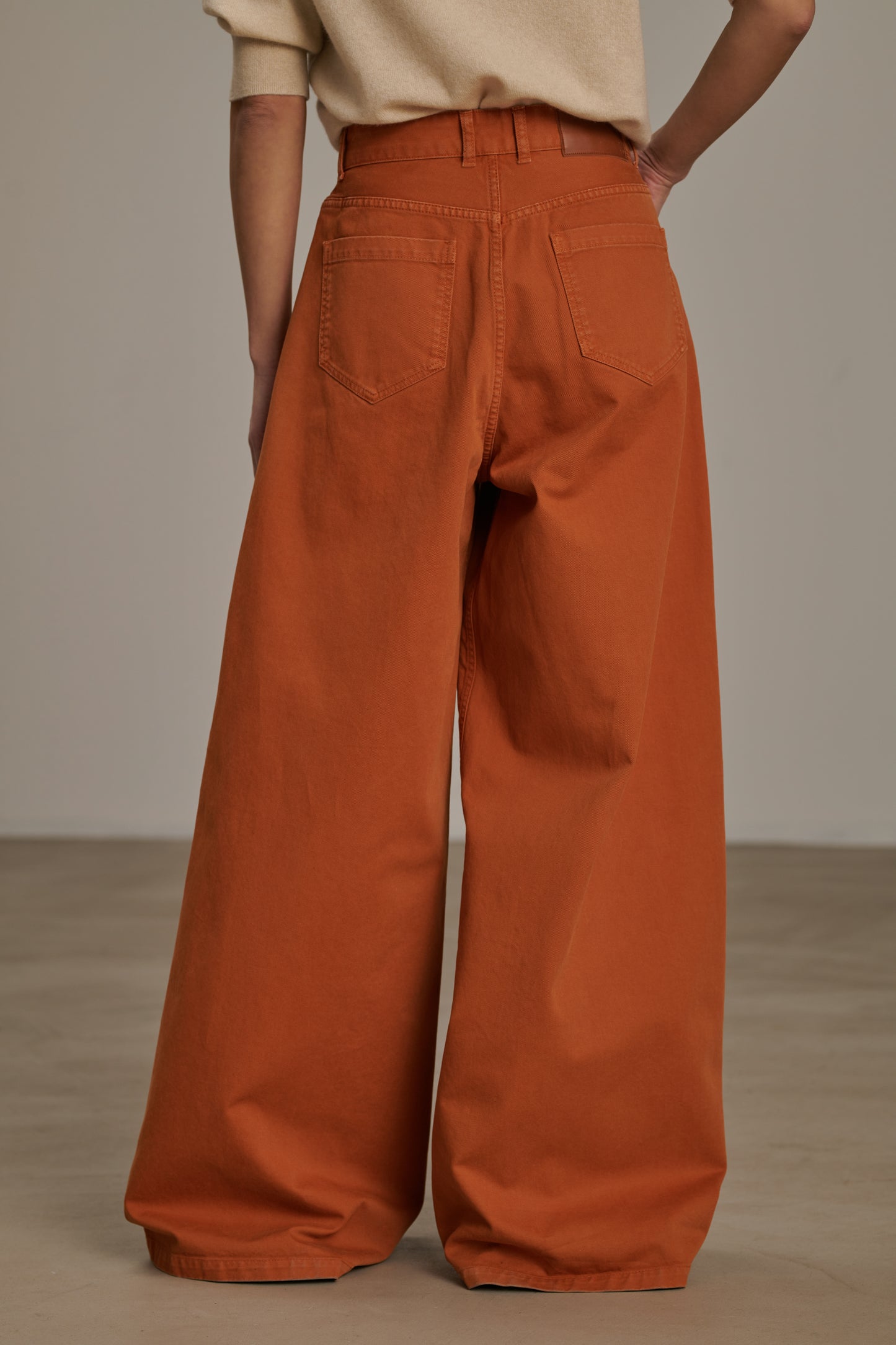 ALEXIS est un pantalon en toile épaisse à la coupe ample et évasée. Son allure est décontractée. Il s'inscrit dans la lignée des looks signatures de Sœur, où l'oversize est maîtrisé.