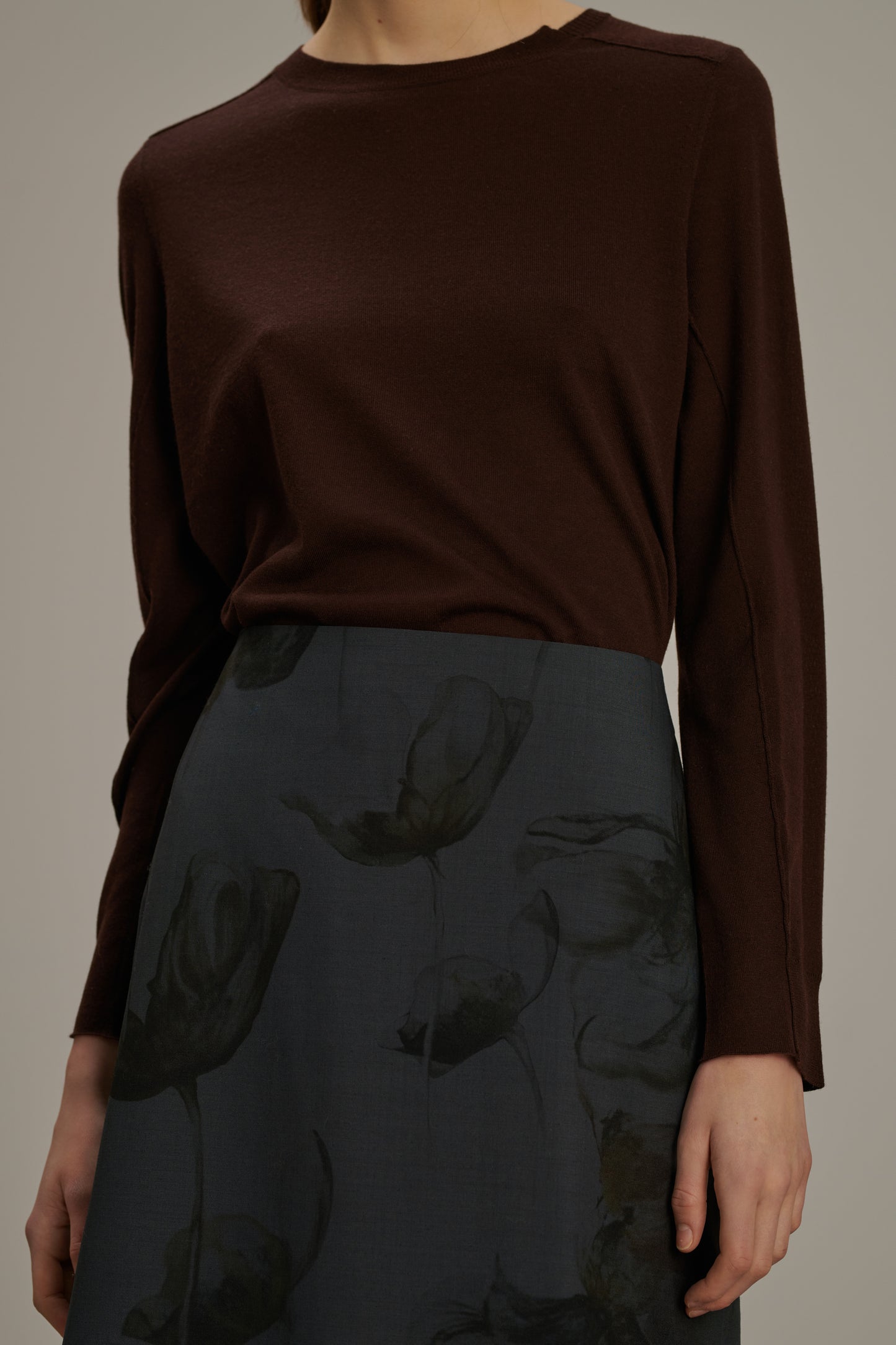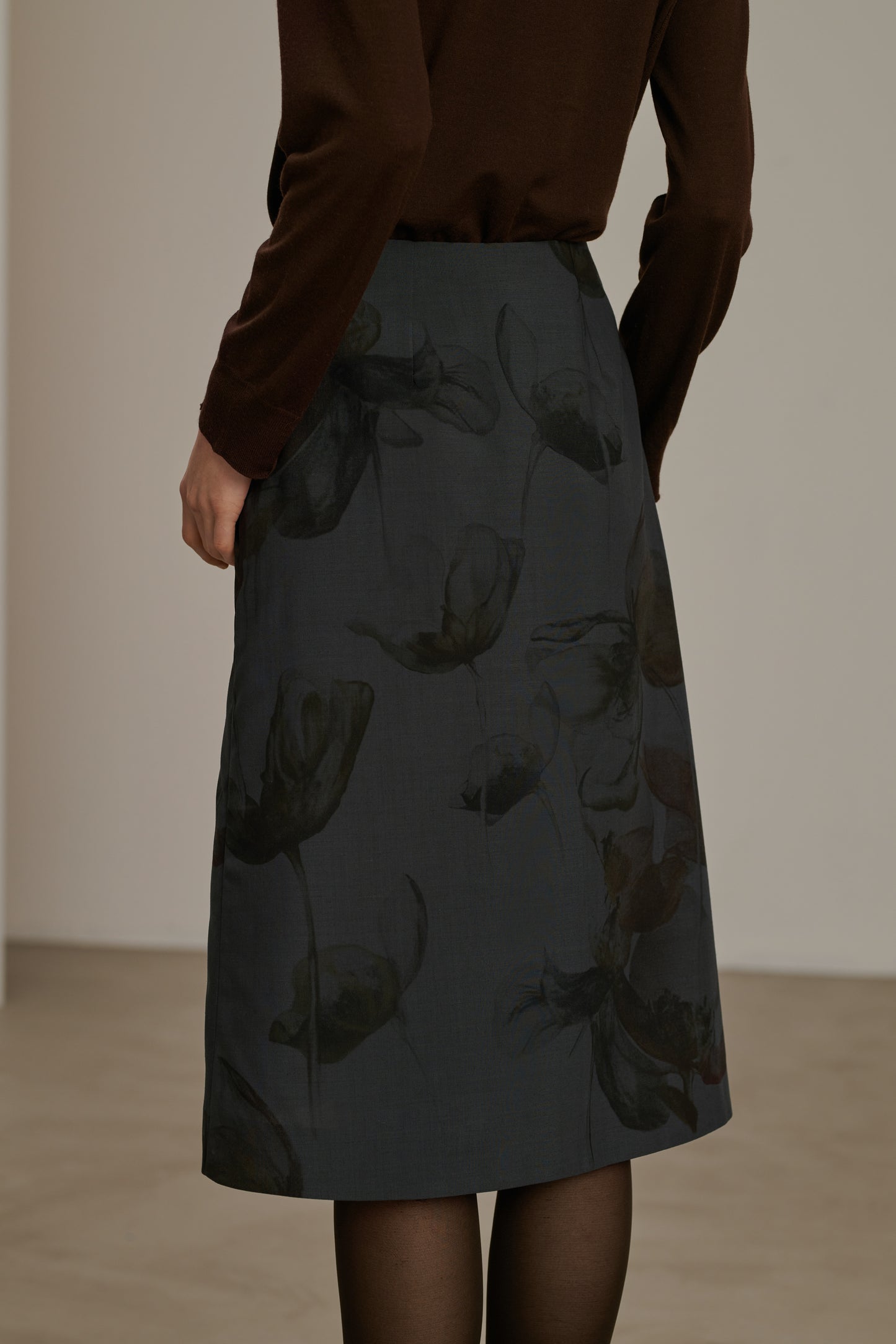 Jupe en toile de laine imprimée gris anthracite