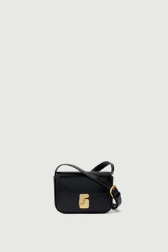 Porte-cartes à rabat monogramme "S" en cuir glacé noir