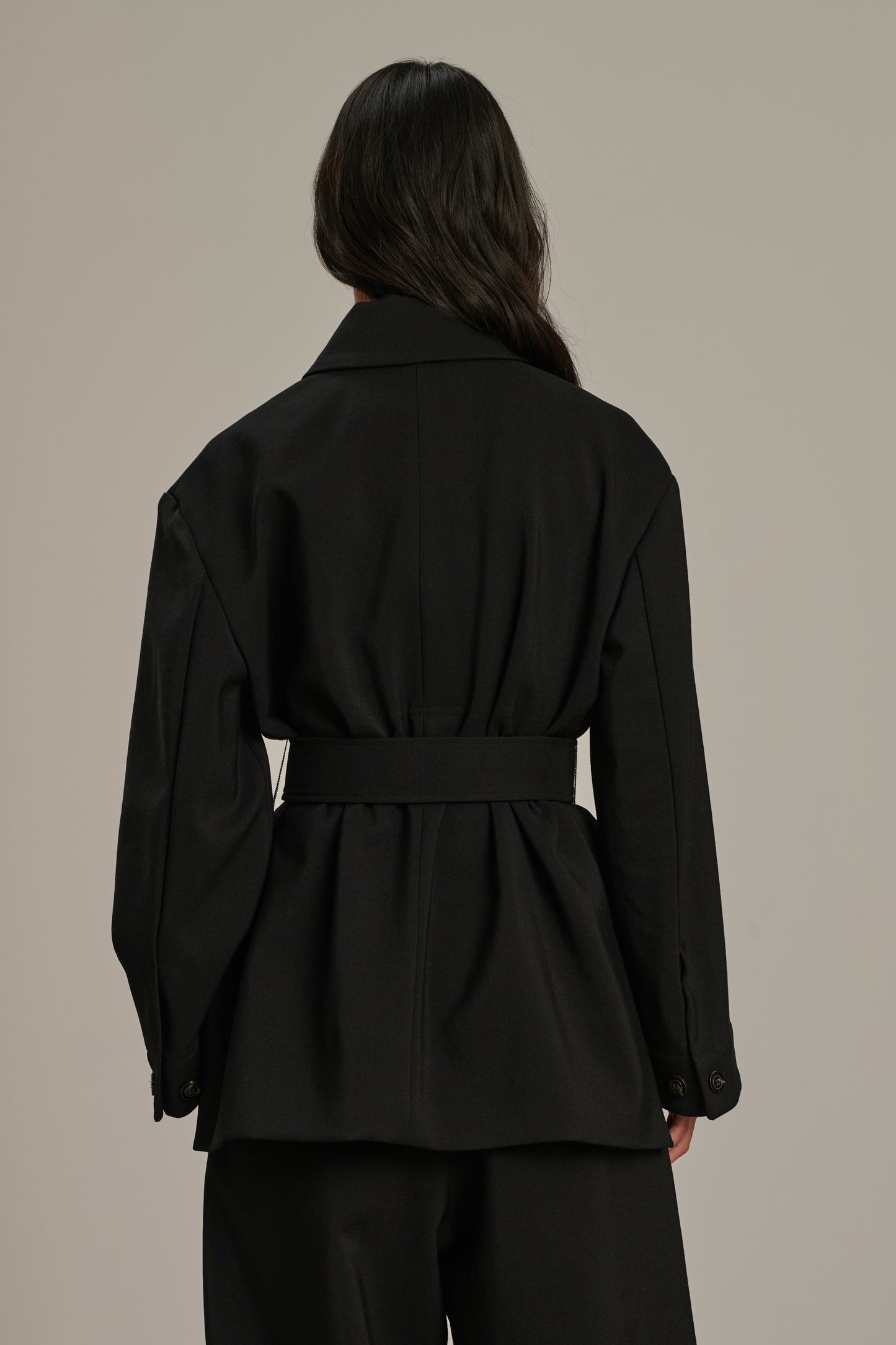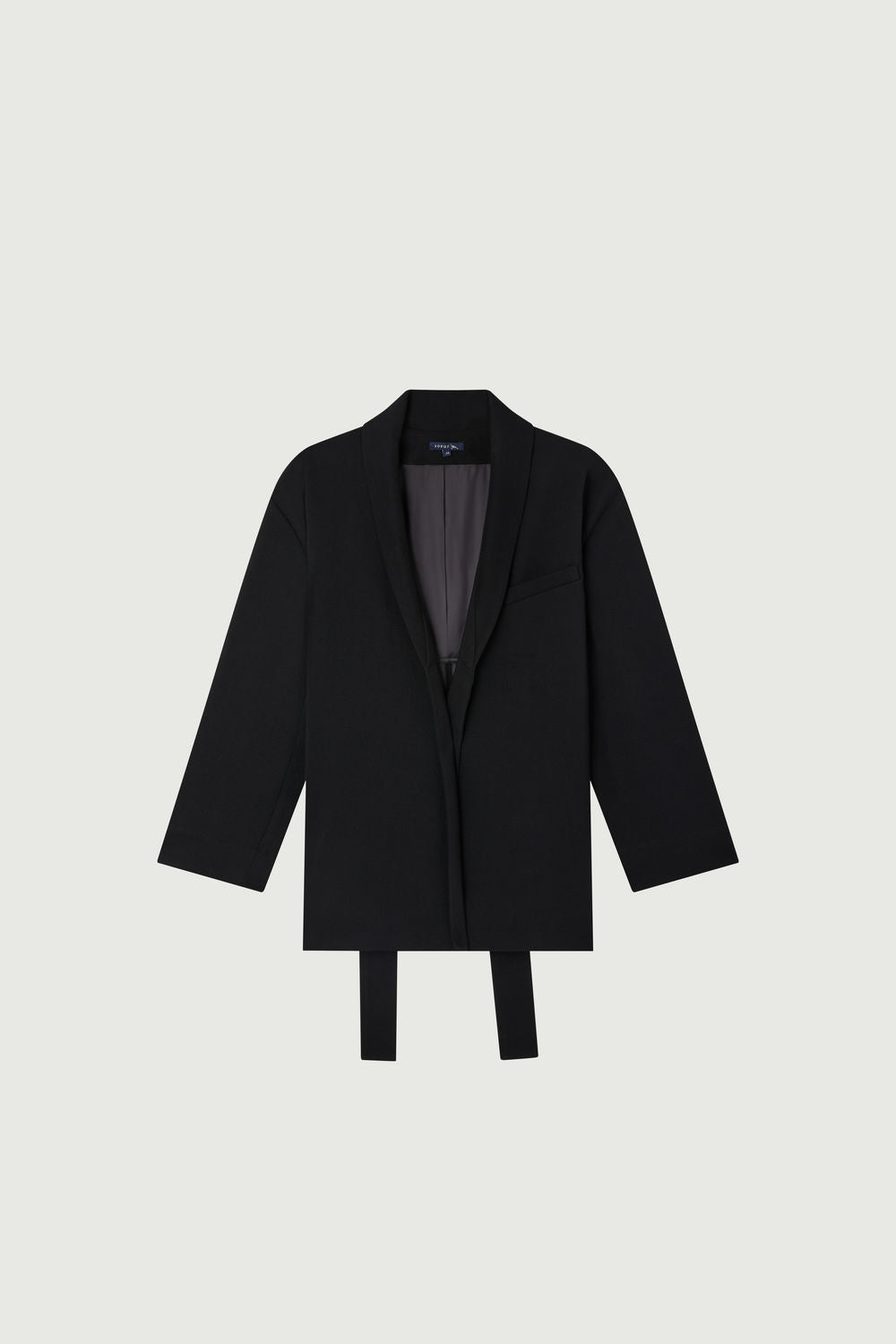 COME est une veste en grain de poudre léger d'un genre nouveau. À la coupe type "peignoir" décontracté, elle est sublimée par l'usage d'un tissu élégant.
